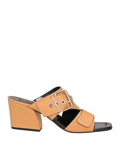leather, buckle, solid color, leather backing, square toeline, square heel, covered heel, leather sole, contains non-textile parts of animal origin, slide sandals