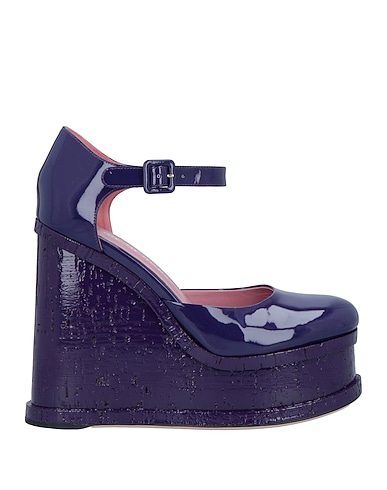 pumps, leather, patent-effect, solid color, no appliqués, leather lining, ties at ankle, round toe, wedge heel, leather/rubber sole, contains non-textile parts of animal origin