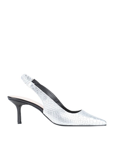 leather, metallic, no appliqués, solid color, leather lining, elasticized inserts, pointed toe, spike heel, rubber sole, contains non-textile parts of animal origin, slingback pumps