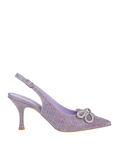 shell, lamé, crystals, solid color with appliqués, leather lining, buckle fastening, pointed toe, spool heel, covered heel, rubber sole, contains non-textile parts of animal origin, slingback pumps