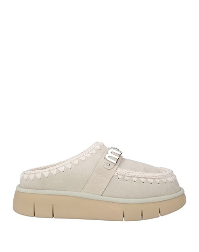 mules, suede, brand logo, knitted trims, two-tone, lined in shearling, round toe, flat, rubber cleated sole, contains non-textile parts of animal origin