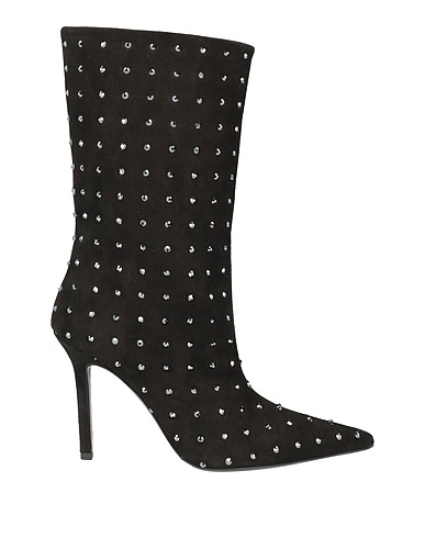ankle boots, suede, solid color with appliqués, crystals, leather lining, zipper fastening, pointed toe, spike heel, plastic heel, rubber sole, contains non-textile parts of animal origin