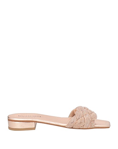 slide sandals, suede-effect fabric, solid color with appliqués, crystals, rubber lining, square toe, flat, leather sole, contains non-textile parts of animal origin