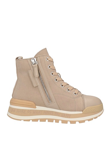 canvas, coated fabric, brand logo, solid color, fabric inner, lace-up, zipper fastening, round toe, wedge heel, rubber cleated sole, chunky boots