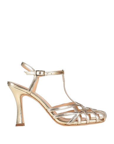 coated fabric, metallic, no appliqués, solid color, lined interior, buckle fastening, square toe, geometric heel, covered heel, leather sole, contains non-textile parts of animal origin, ankle strap sandals