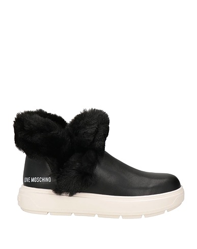 padded ankle boots, leather, solid color, no appliqués, plush fabric inner, round toe, wedge heel, rubber wedge, rubber cleated sole, contains non-textile parts of animal origin