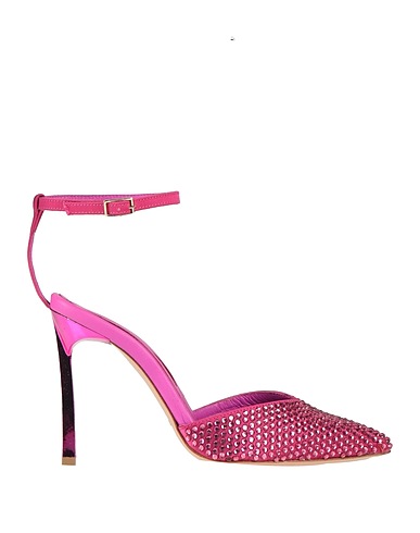 pumps, satin, solid color with appliqués, crystals, leather lining, buckle-fastening ankle strap, pointed toe, stiletto heel, leather sole, contains non-textile parts of animal origin
