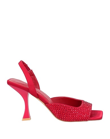 ankle strap sandals, organza, solid color with appliqués, crystals, rubber lining, elasticized strap, square toe, geometric heel, rubber sole