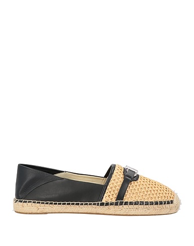 espadrilles, leather, rope, two-tone, brand logo, round toe, flat, rubber cleated sole, fabric inner, contains non-textile parts of animal origin
