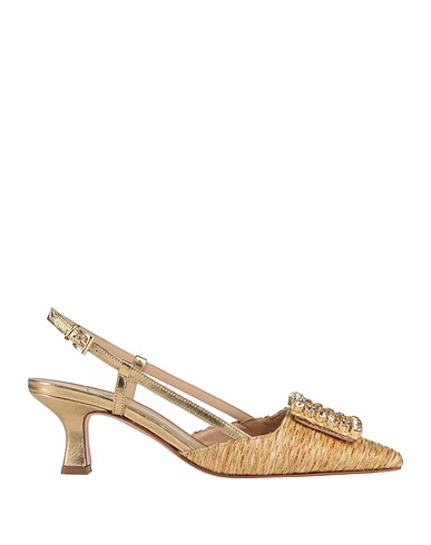 slingback pumps, leather, raffia, metallic, two-tone, crystals, leather lining, buckle fastening, pointed toe, spool heel, leather/rubber sole, contains non-textile parts of animal origin, large sized