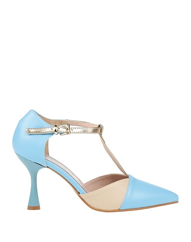 t-bar, coated fabric, metallic, no appliqués, multicolor, fully lined, buckle-fastening ankle strap, pointed toe, spool heel, leather sole, contains non-textile parts of animal origin