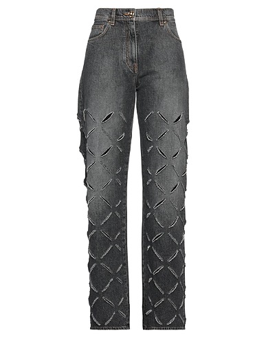 denim, faded, torn fabric, brand logo, solid color, colored wash, high waisted, belt loops, straight leg, regular fit, 1 button, zipper closure, five pockets, straight-leg model