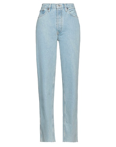 denim, faded, no appliqués, solid color, light wash, high waisted, straight leg, regular fit, button closing, multipockets, straight-leg model
