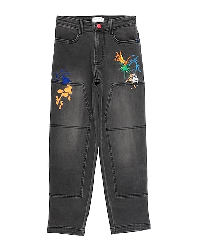 straight-leg jeans, denim, solid color with appliqués, embroidered, brand logo, colored wash, zipper fastening, five pockets, wash at 30° c, do not bleach, do not tumble dry, iron at 110° c max