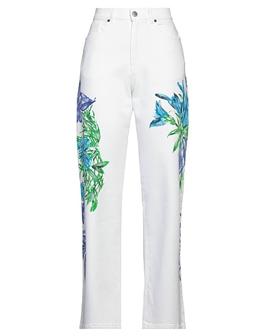 denim, brand logo, print, floral design, colored wash, high waisted, straight leg, regular fit, zipper closure, 1 button, multipockets, straight-leg model