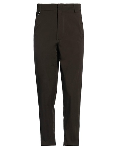 plain weave, brand logo, solid color, high waisted, belt loops, tapered leg, regular fit, zipper closure, hook-and-eye closure, multipockets, stretch, tailored