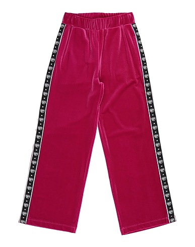 chenille, side seam stripes, brand logo, solid color with appliqués, elasticized waist, multipockets, stretch, hand wash or dry clean, do not bleach, do not tumble dry