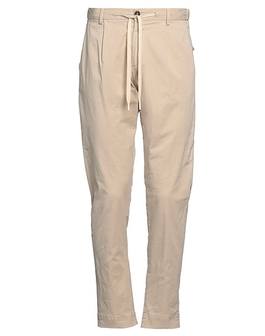 casual pants, gabardine, solid color, no appliqués, high waisted, drawstring waist, tapered leg, regular fit, zipper fastening, 1 button, folded hem, multipockets, stretch, machine wash or dry clean, do not bleach, do not tumble dry