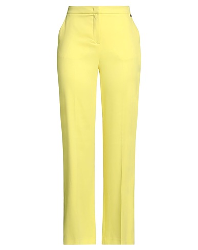 straight-leg pants, twill, stretchy fabric, solid color, brand logo, high waisted, regular fit, zipper fastening, hook fastenings, side slit hemline, slit pockets, machine wash or dry clean, do not bleach, do not tumble dry