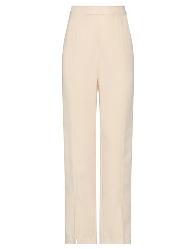 straight-leg pants, crepe, solid color, no appliqués, high waisted, regular fit, zipper fastening, side slit hemline, machine wash or dry clean, do not bleach, do not tumble dry