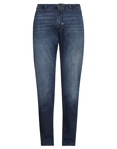 tapered jeans, denim, faded, solid color, brand logo, dark wash, mid rise, regular fit, 1 button, zipper fastening, multipockets, stretch, machine wash, do not bleach, do not tumble dry