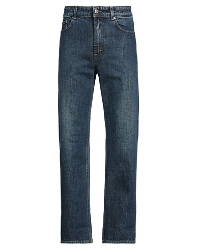 straight-leg jeans, denim, solid color, brand logo, medium wash, high waisted, slim fit, zipper fastening, button fastenings, five pockets, machine wash or dry clean, do not bleach, tumble dry