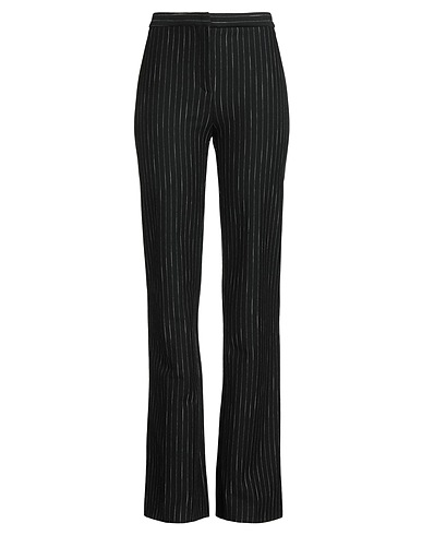 flared pants, jersey, pinstriped, no appliqués, high waisted, regular fit, hook fastenings, zipper fastening, stretch, dry clean, do not bleach, do not tumble dry
