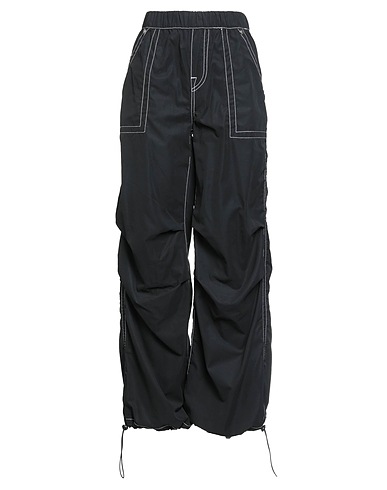 wide-leg pants, woven, solid color, no appliqués, high waisted, elasticized waist, regular fit, drawstring hem, multipockets, machine wash, do not bleach, tumble dry