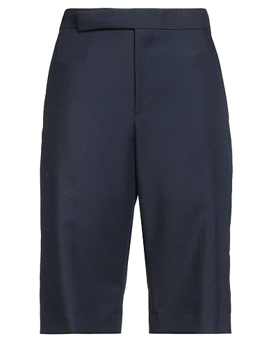 bermuda shorts, cool wool, solid color, no appliqués, high waisted, belt loops, hook fastenings, zipper fastening, slit pockets, dry clean, do not bleach, do not tumble dry