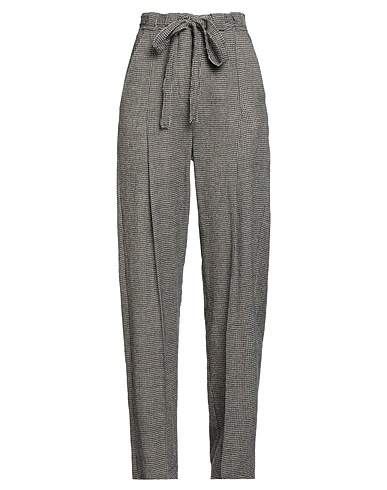 tapered pants, wool, houndstooth, belt, darts, high waisted, belt loops, regular fit, zipper fastening, 1 button, slit pockets, dry clean, do not bleach, do not tumble dry