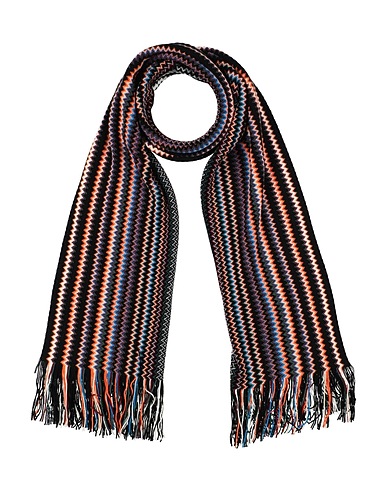 scarf, intarsia-knit, lightweight knit, signature print, fringes, dry clean, do not bleach, do not tumble dry