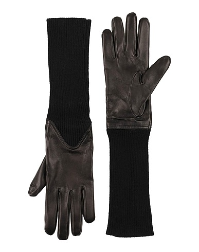 gloves, cashmere, leather, lightweight knit, mélange, brand logo, do not wash, do not bleach, do not tumble dry, do not iron, contains non-textile parts of animal origin