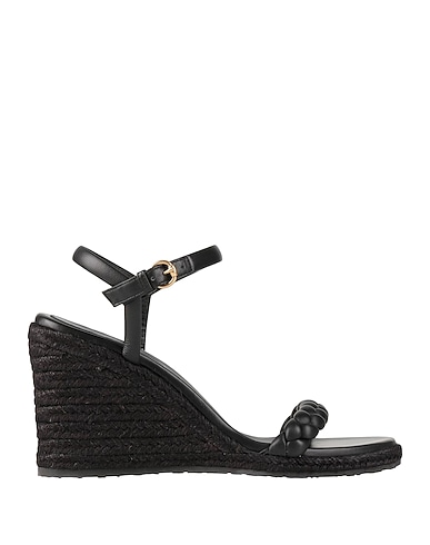 espadrille sandals, leather, solid color, no appliqués, leather lining, buckle-fastening ankle strap, round toe, wedge heel, rope wedge, rubber sole, contains non-textile parts of animal origin, planning a weekend getaway or beach vacation? this is the effortless summer style you need