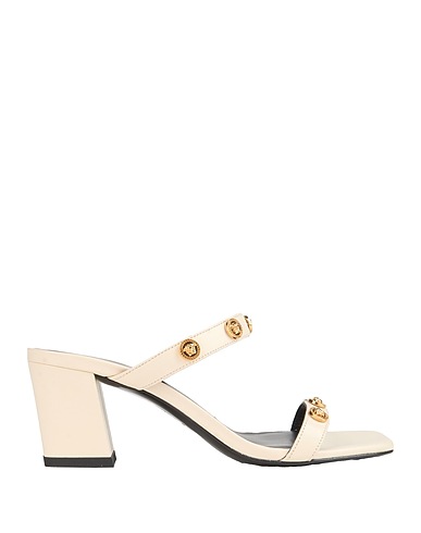 sandals, leather, solid color with appliqués, brand logo, embellished, leather lining, square toe, square heel, leather/rubber sole, contains non-textile parts of animal origin