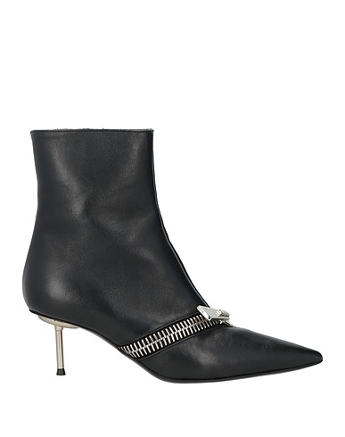 ankle boots, leather, embellished, solid color with appliqués, leather lining, zipper fastening, pointed toe, spike heel, leather sole, contains non-textile parts of animal origin