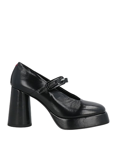 mary jane pumps, leather, solid color, no appliqués, leather lining, buckle fastening, square toe, geometric heel, leather sole, contains non-textile parts of animal origin, large sized
