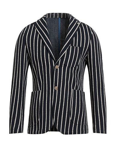 single-breasted blazer, knitted, lightweight knit, striped, brooch, lapel collar, long sleeves, unlined, button fastenings, multipockets, machine wash, do not bleach, do not tumble dry