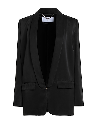 single-breasted blazer, satin, solid color, no appliqués, lapel collar, long sleeves, shoulder pads, fully lined, hook fastenings, flap pockets, machine wash or dry clean, do not bleach, do not tumble dry, be the best-dressed bridesmaid or wedding guest with this designer piece, perfect for any ceremony