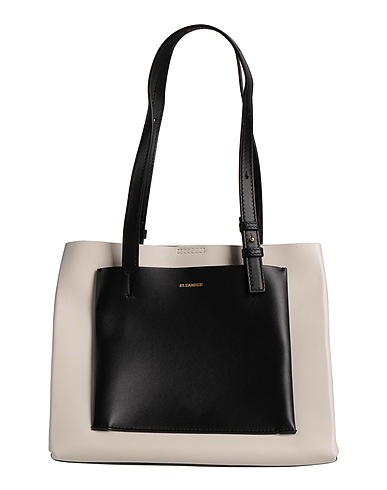 tote, leather, two-tone, brand logo, magnetic fastening, unlined, external pockets, double handle, medium, contains non-textile parts of animal origin