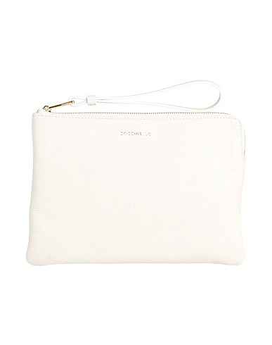 clutch, pebbled-leather, solid color, brand logo, zipper fastening, fully lined, card slots, top handle, medium size, contains non-textile parts of animal origin