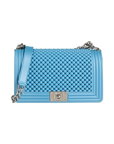 flap bag, medium, coated fabric, solid color, brand logo, framed closure, unlined, detachable shoulder strap, metallic straps