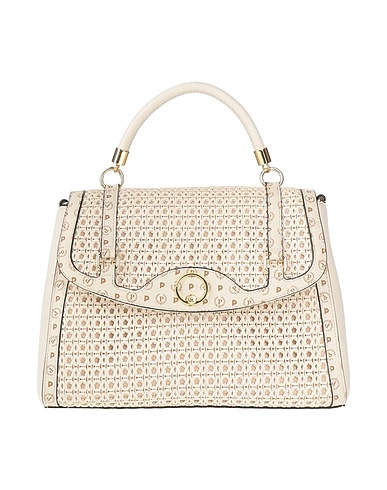 flap bag, synthetic material, two-tone, brand logo, snap fastenings, internal pockets, medium size