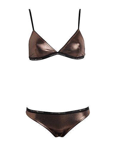 synthetic jersey, metallic, stretchy fabric, brand logo, two-tone, hook fastenings, adjustable straps, do not bleach, hand wash, do not tumble dry