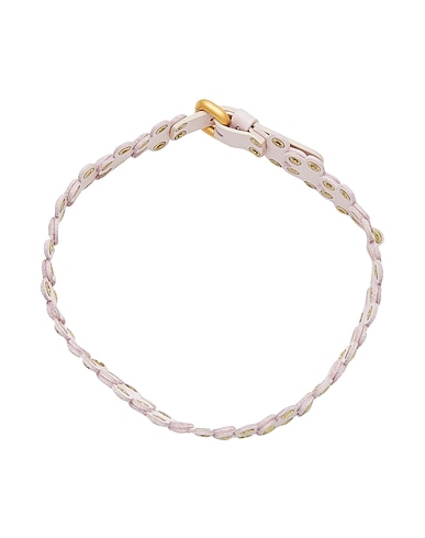 leather, embellished, buckle fastening, contains non-textile parts of animal origin