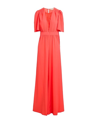 crepe, lace, brand logo, solid color, crewneck, short sleeves, 1 button, zipper fastening, no pockets