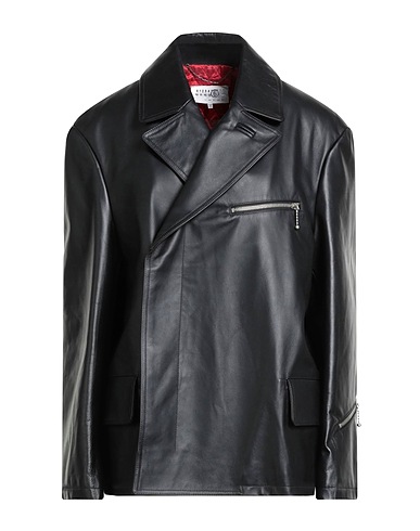 jacket, leather, no appliqués, plain colour, lapel collar, double-breasted, long sleeves, synthetic filling, lightweight padding, button fastenings, flap pockets, zipped pockets, contains non-textile parts of animal origin, dry clean, do not bleach, do not tumble dry