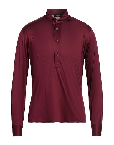 jersey, plain colour, no appliqués, polo collar, long sleeves, buttoned cuffs, button fastenings, machine wash or dry clean, do not bleach, do not tumble dry