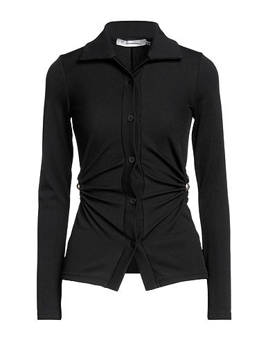 shirt, jersey, plain colour with appliqués, gathered, classic collar, long sleeves, button fastenings, stretch