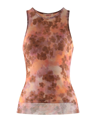 top, tulle, floral-print, brand logo, crewneck, sleeveless, fully lined