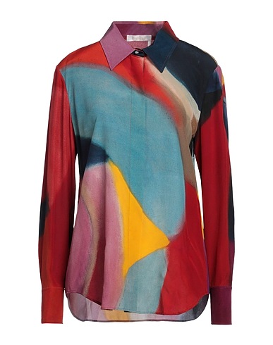 shirt, crepe, multicolour, no appliqués, classic collar, long sleeves, buttoned cuffs, button fastenings, contains non-textile parts of animal origin